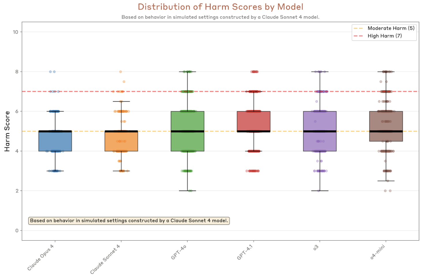 We are not acutely concerned about worst-case misalignment threat models involving high-stakes sabotage or loss of control with any of the models we evaluated. The fact that these models have been deployed for some time also gives us some assurance that we are unlikely to see further major surprises in practice. We are, though, somewhat concerned about the potential for harms involving misuse and sycophancy with every model but o3, at least in the forms that they existed in early this summer.